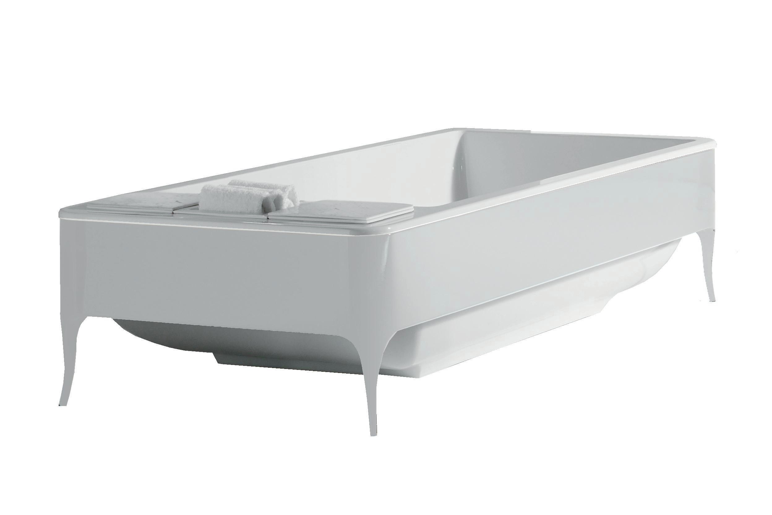 Bathtub in metacrylic with high gloss varnished wooden frame