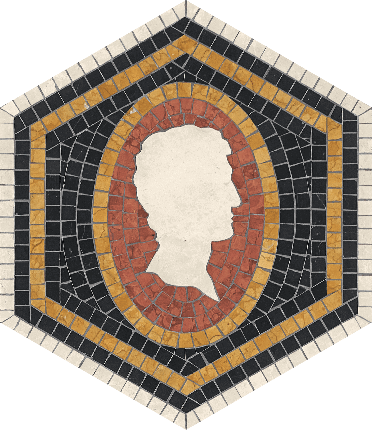 crema botticino, giallo verona, nero assoluto, rosso verona